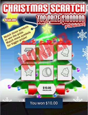 Scratch Kings(スクラッチキングス)は、コインでカードの銀紙部分を削り、3つの絵柄がそろえば賞金がもらえるというギャンブル「スクラッチ」のゲームアプリです。残念ながら本物のお金は出てきませんが、Androidスマートフォンのタッチ画面をスクラッチカードに見立てて指で削るしぐさには、本物と同じドキドキ感を禁じえません。